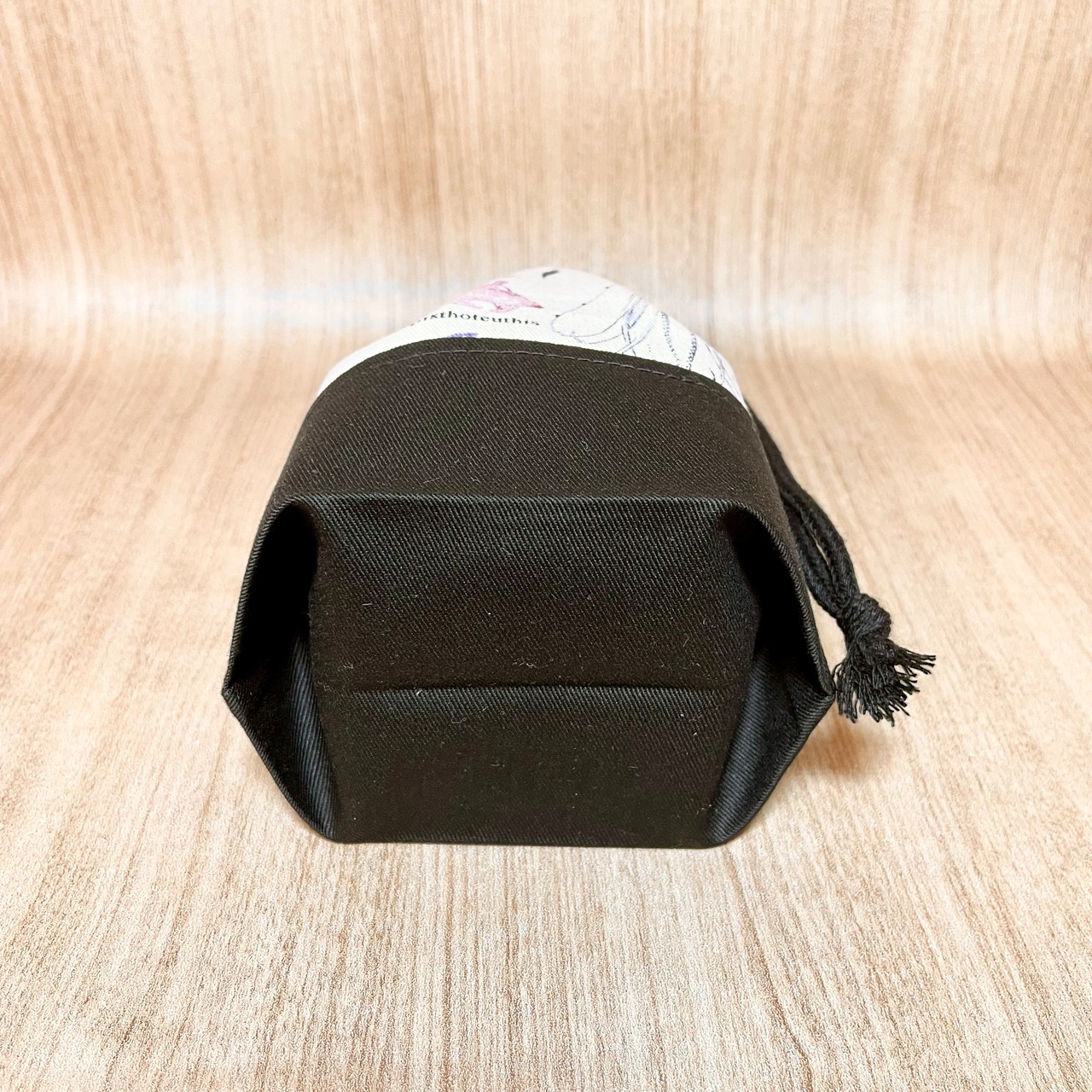 深海魚(生成り)×黒 コップ袋18×16×8cm