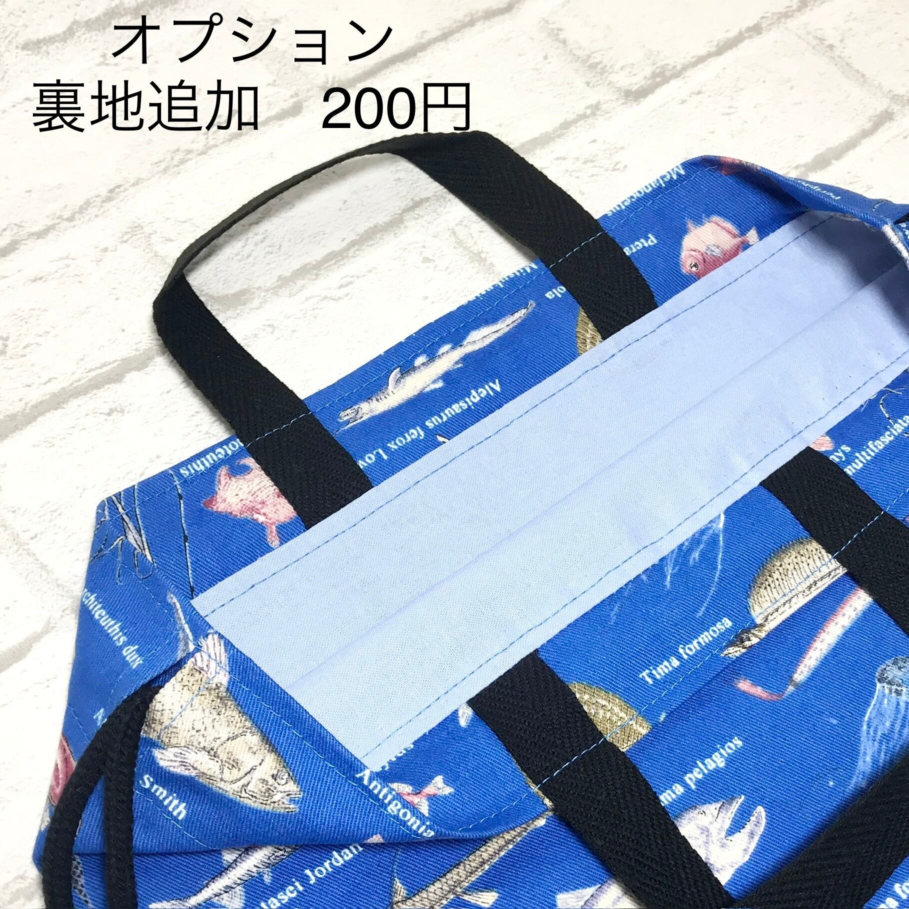 深海魚(ブルー)×黒 持ち手付き体操着袋38×30cm
