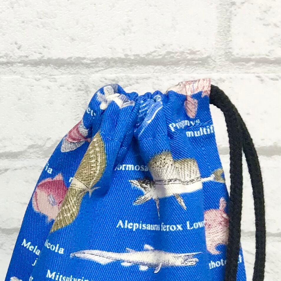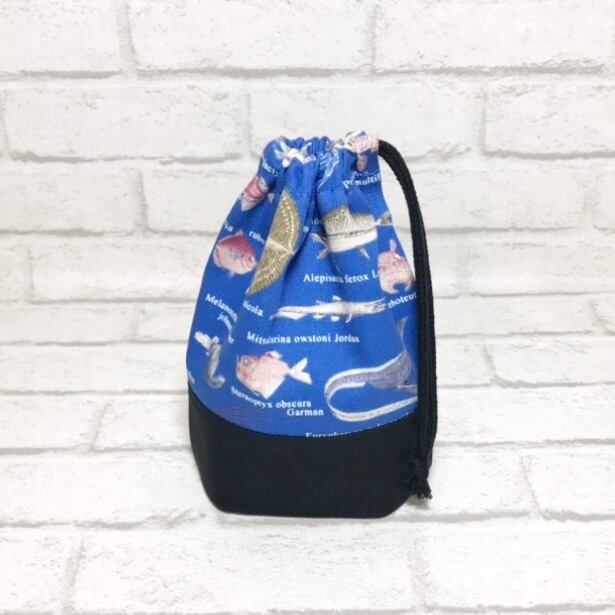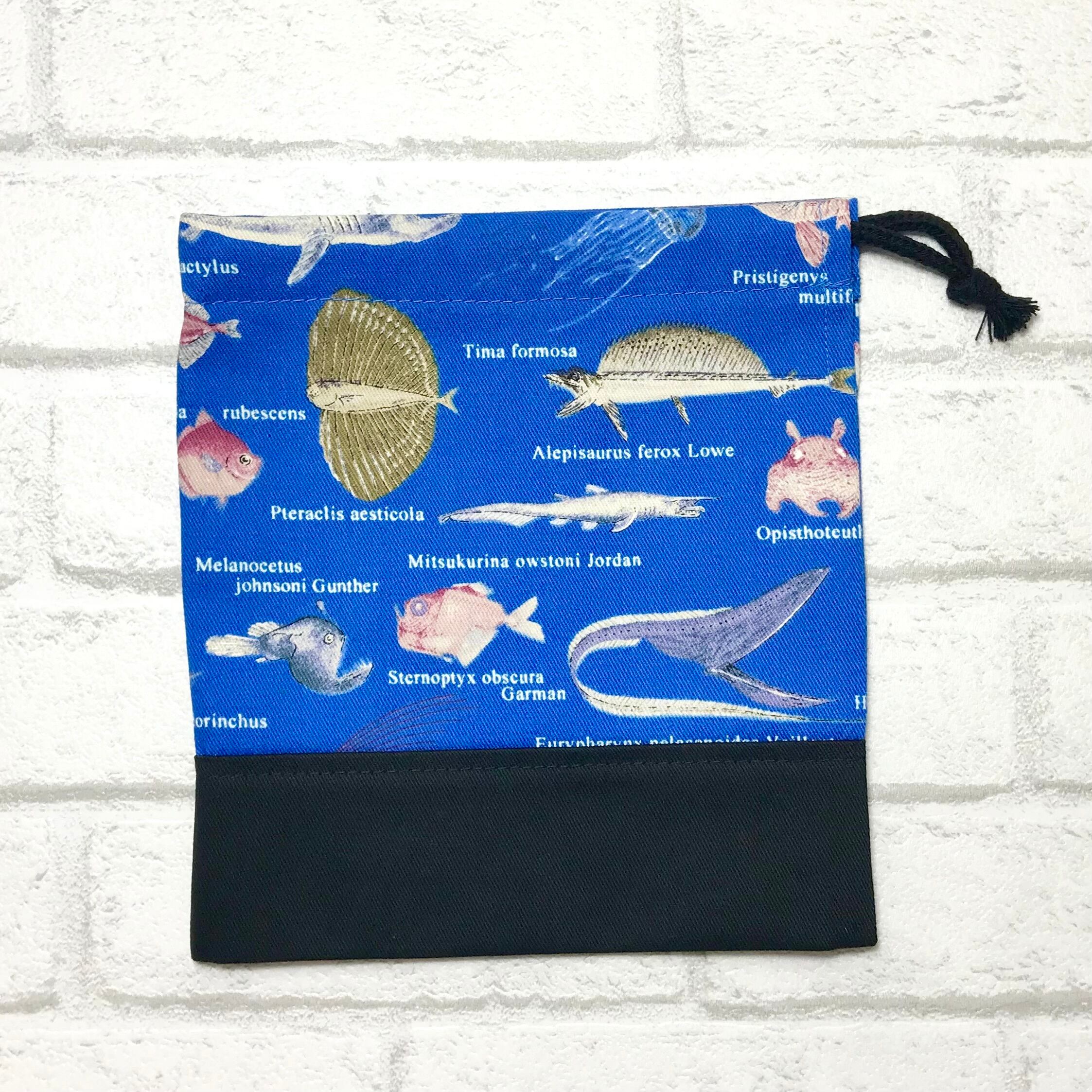 深海魚(ブルー)×黒 コップ袋18×16×8cm