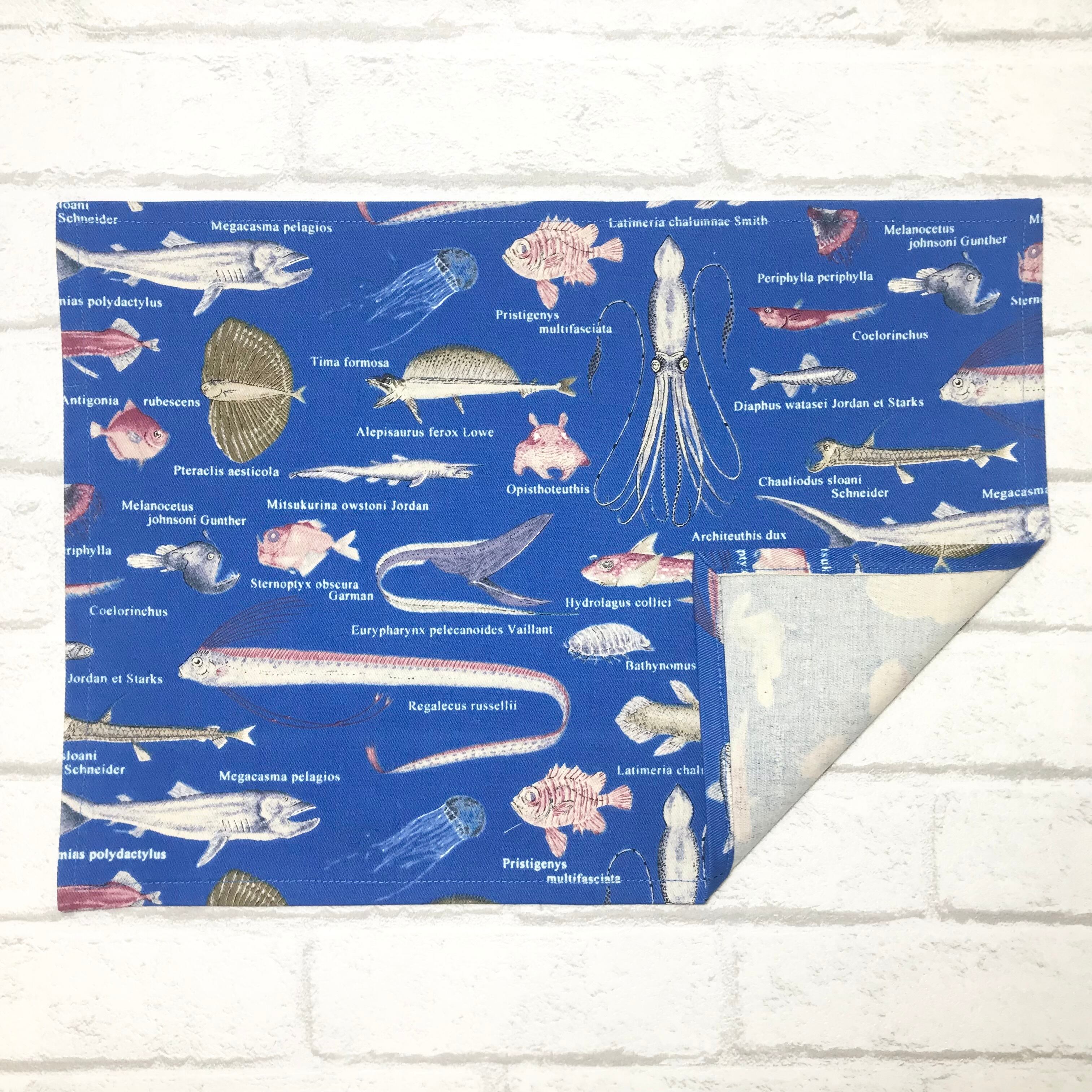 ブルーを基調にした深海魚のデザインが、食卓に自然の美しさを与えるランチョンマットです。