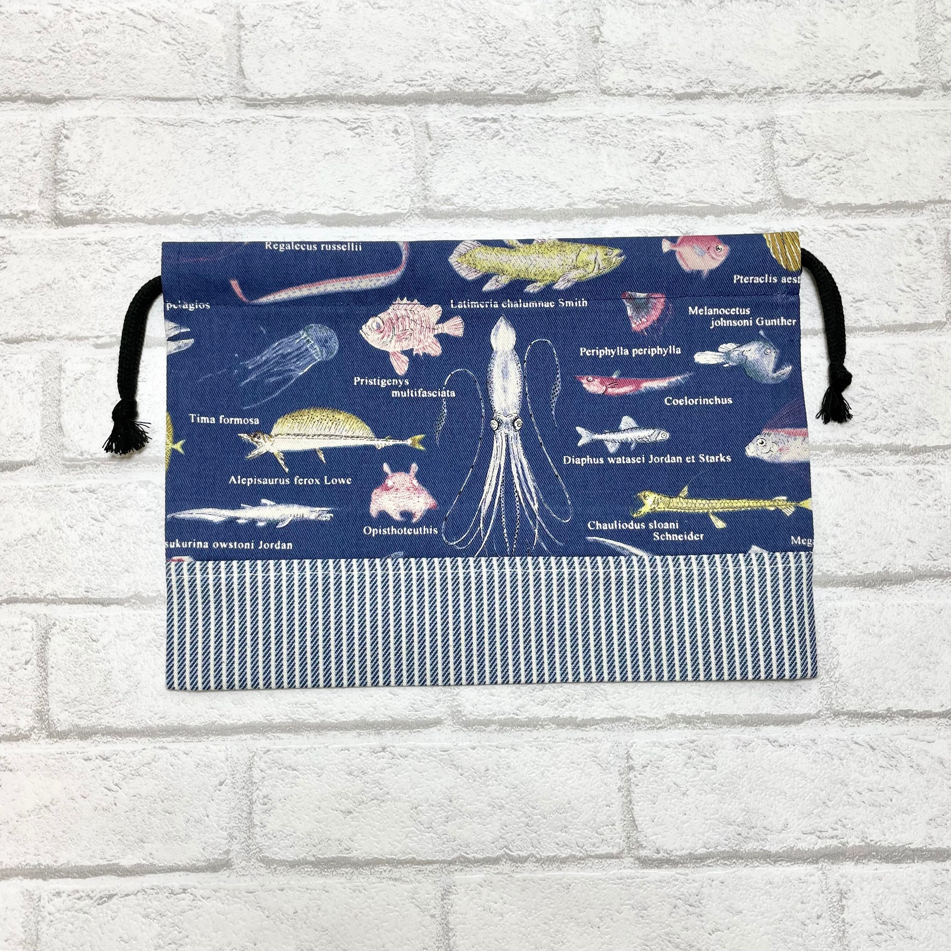 深海魚(ネイビー)×ストライプ お弁当袋18×26×10cm