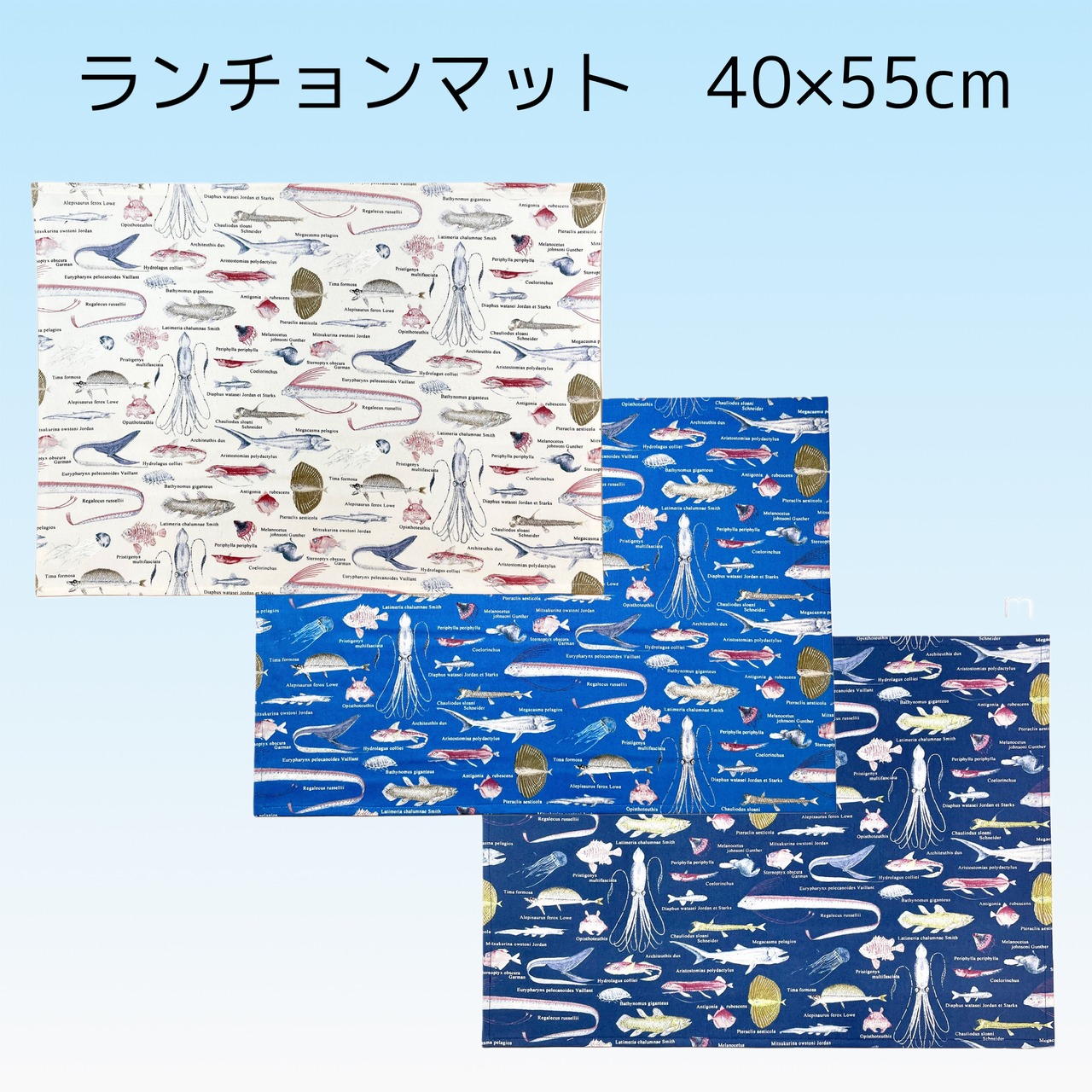 ネイビーを基調にした深海魚のデザインが、シンプルでありながらもスタイリッシュな印象を与えるランチョンマットです。