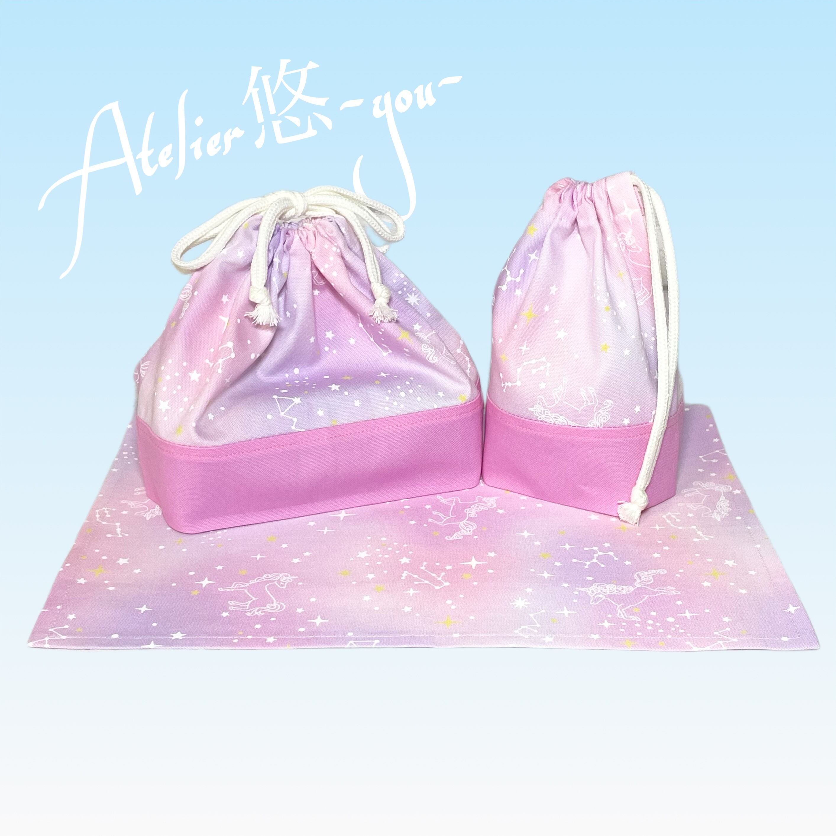星座とユニコーンをモチーフにしたピンクのデザインが、夢の世界を感じさせる印象を与えるランチョンマットです。