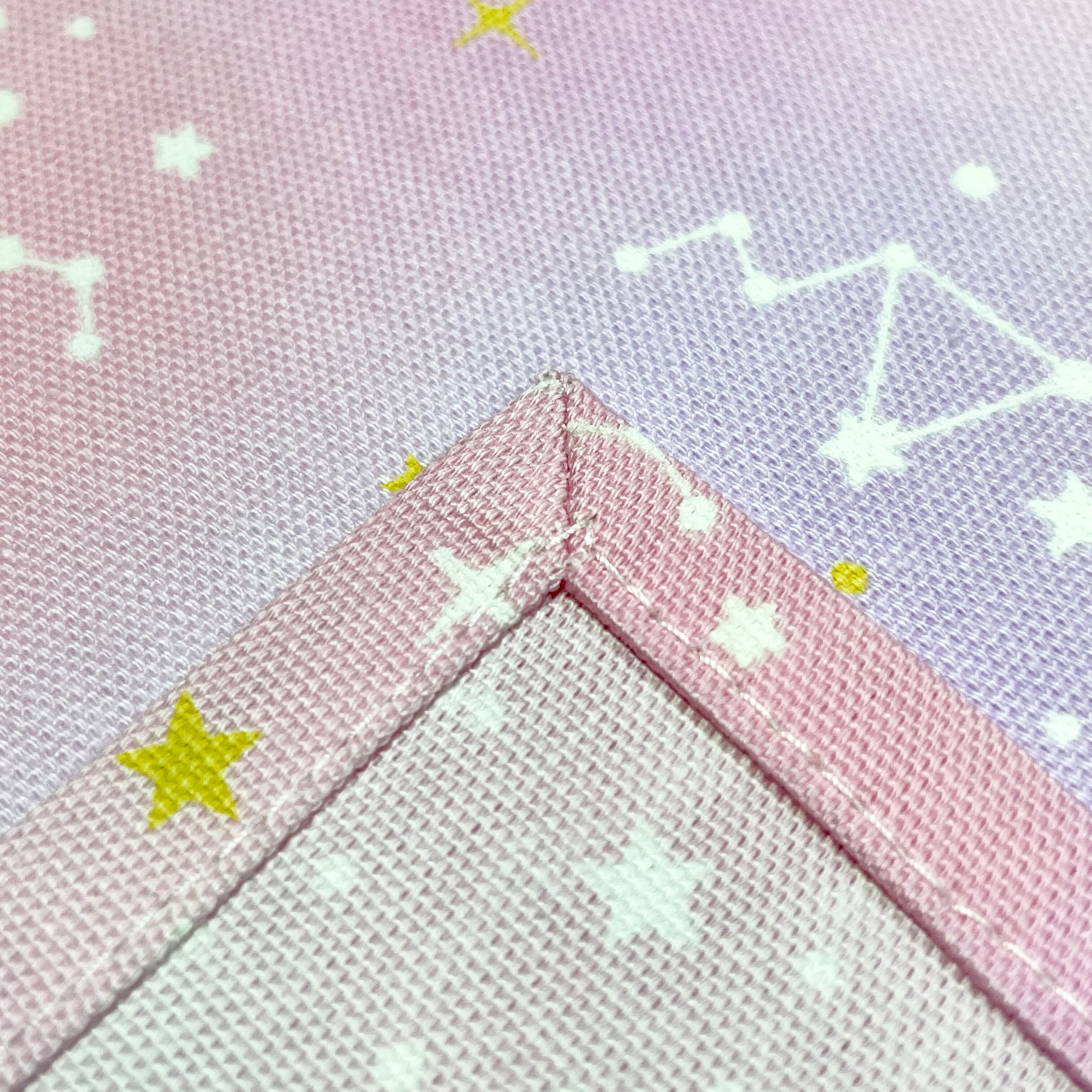 星座とユニコーンをモチーフにしたピンクのデザインが、夢の世界を感じさせる印象を与えるランチョンマットです。